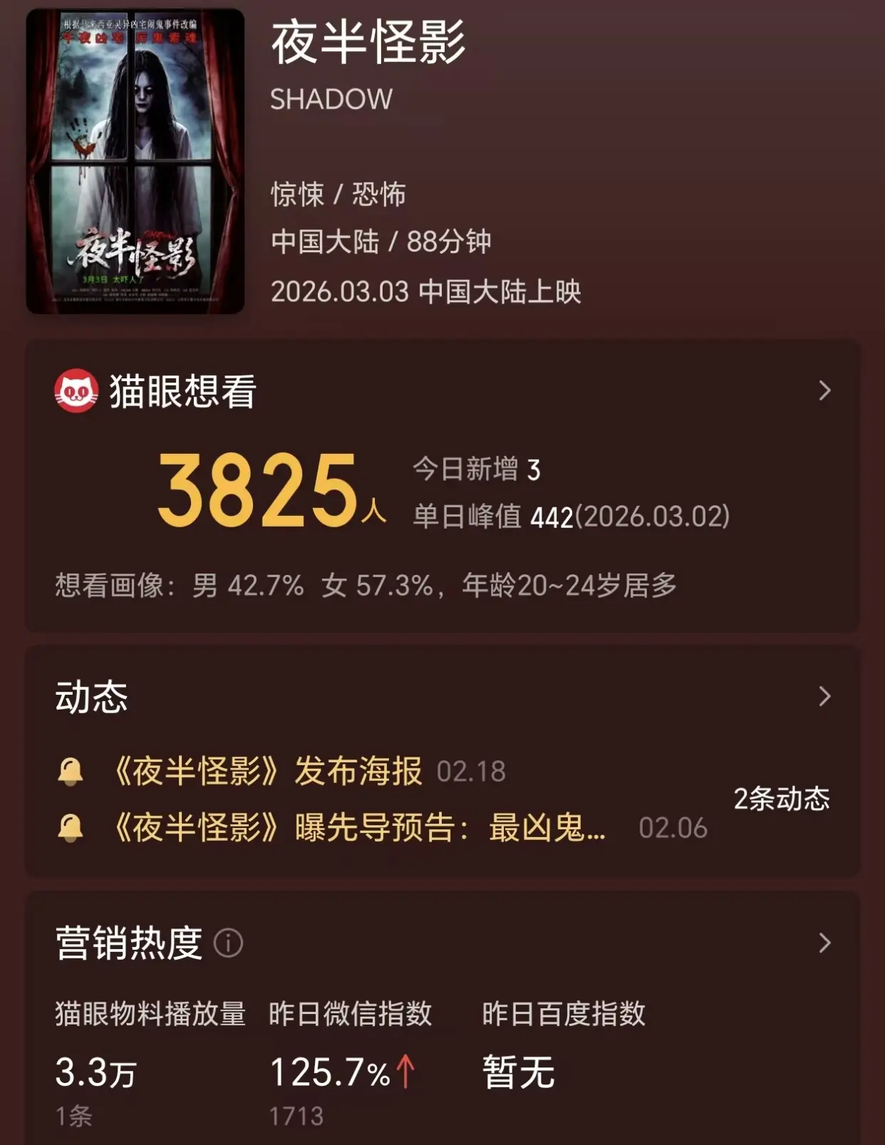 上映三天没有任何票房进账,《夜半怪影》成为本月最惨电影。